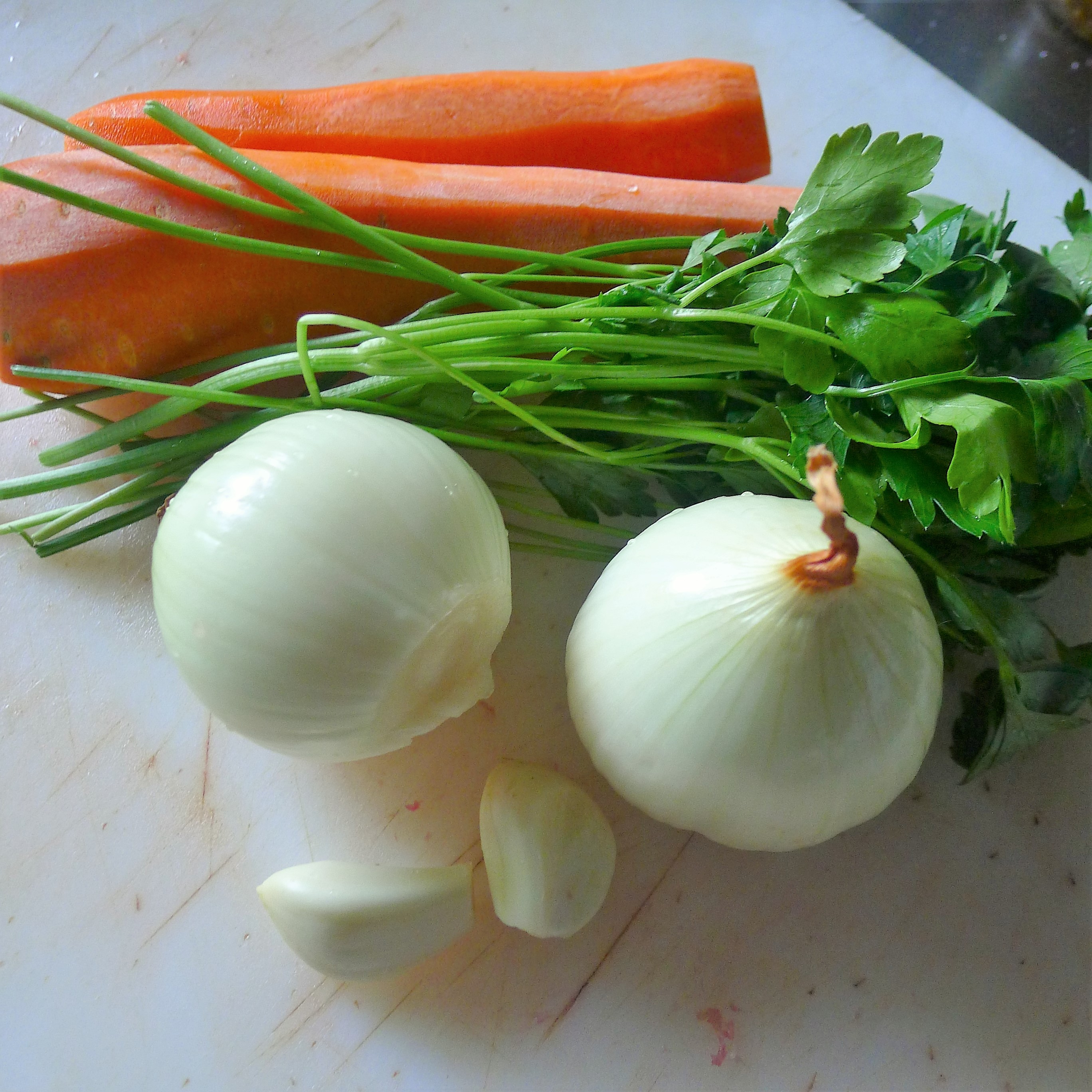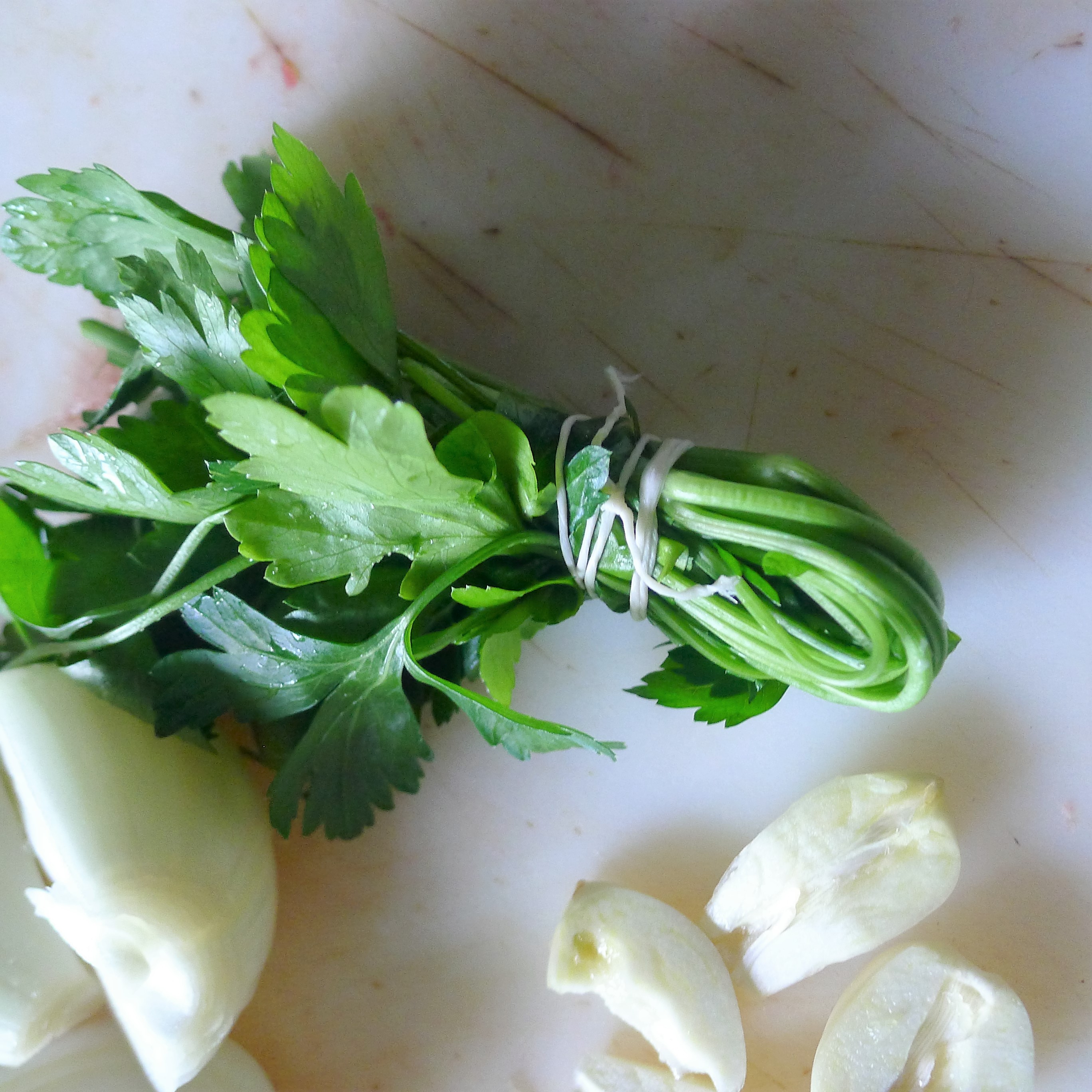 - pătrunjel, dar întreg ,nu mărunțit, de preferință plat, cum se găsește în România – în Franța este o cu totul altă poveste. Legați-l cu o ață.
